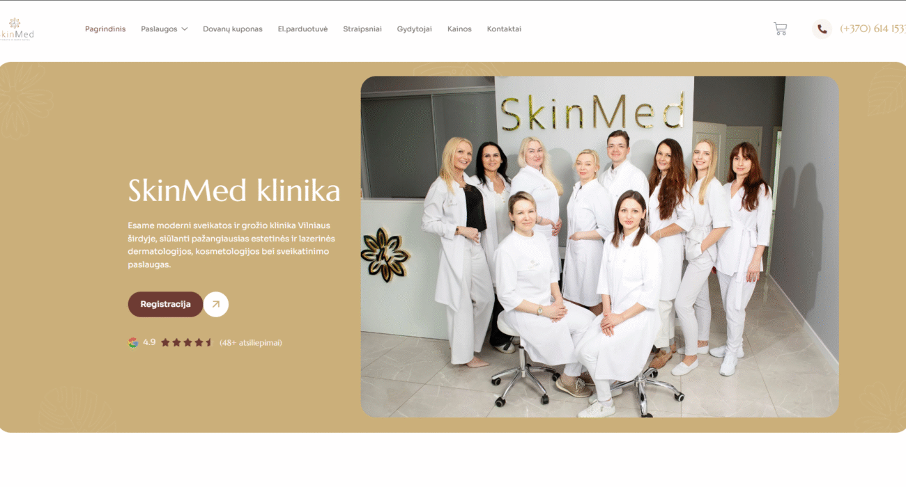 SkinMed Grožio ir sveikatos klinika – grožio menas susitinka su mokslu Sukūrėme SkinMed – modernią ir profesionalią grožio klinikos svetainę, kuri aiškiai reprezentuoja estetinių ir sveikatinimo paslaugų spektrą. Platforma pabrėžia klinikos patikimumą, profesionalią komandą ir šiltą požiūrį į kiekvieną klientą. Paslauga: Internetinės svetainės kūrimas Klientas: SkinMed Vieta: Vilnius Data: 2025-06-25 [...]